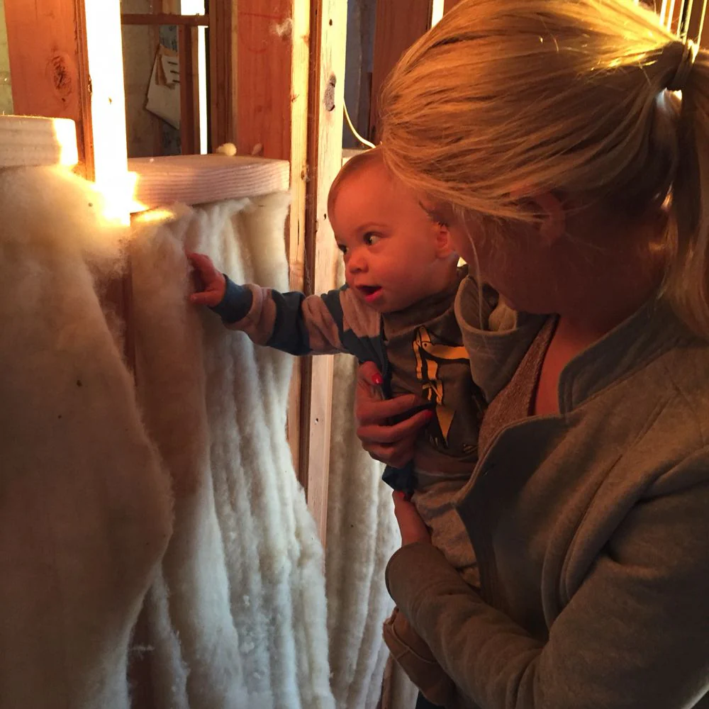 Our blown-in insulation consists of “knops” or balls of wool that are incredibly effective at trapping air, thus offering R4.3 per inch. The wool is blown into a wall cavity ensuring maximum coverage, i.e. no gaps. Naturally, wool expands slightly over time which means no slumping especially in the presence of moisture or water. Other blown-in insulation absorbs water like a sponge, gets heavy under its own weight, settles to the bottom of the cavity and attracts mold.