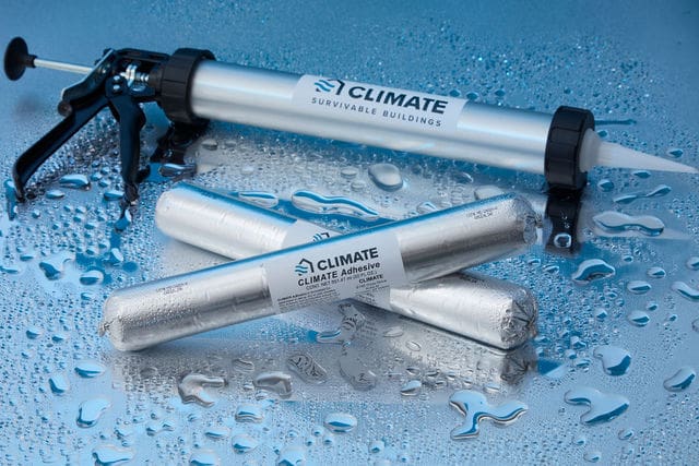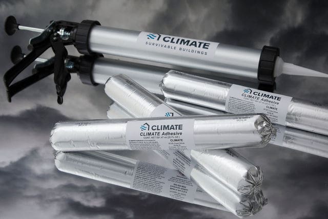 Climate™ Adhesive/Sealant General Purpose (GP) product is for window and door sealant applications. Six years of research, development, and testing of Climate’s three products have demonstrated that ClimateTM adhesives enable a whole-structure, high-performance climate adaptation solution for structures vulnerable to natural disasters’ increasing frequency and intensity.
