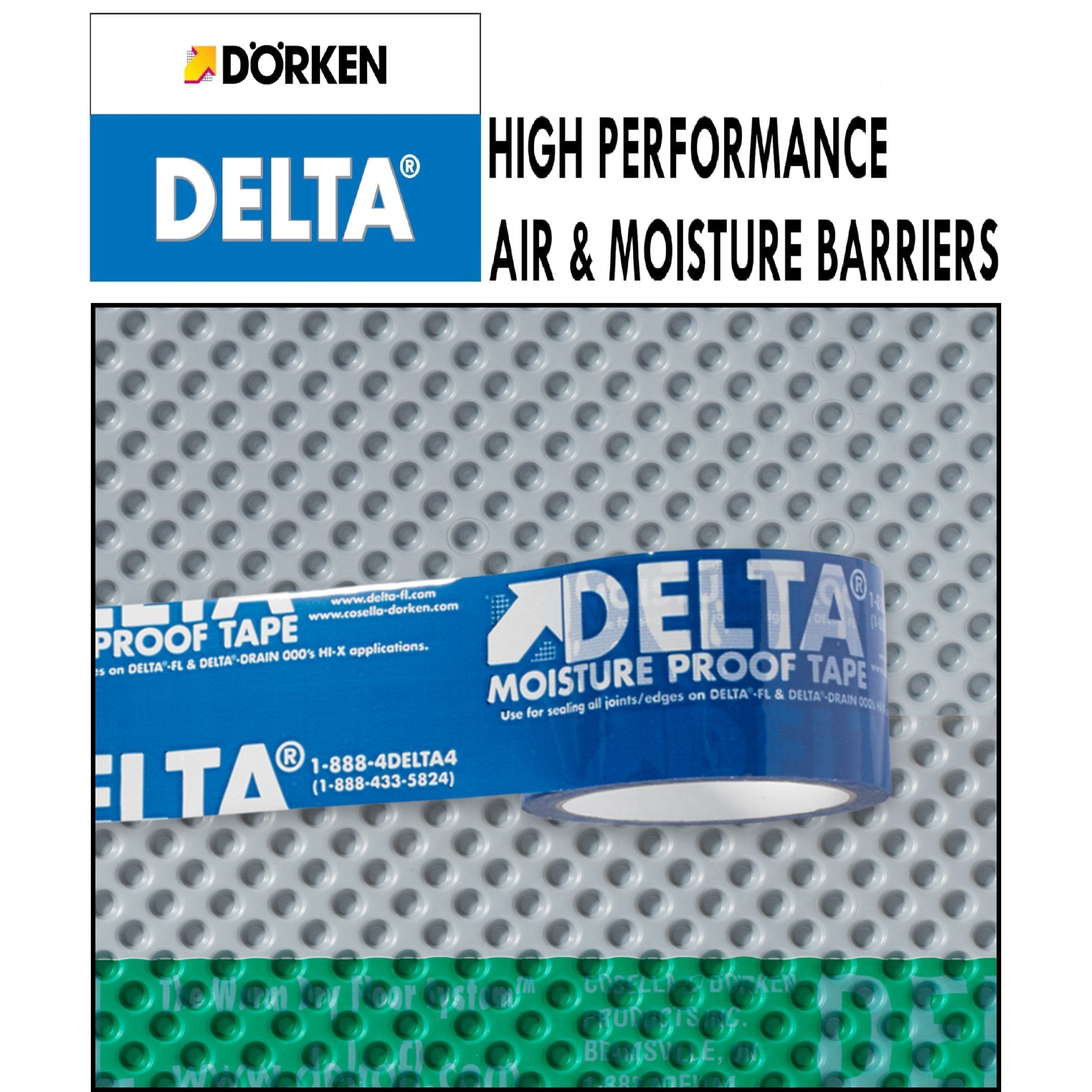 DELTA®-MOISTURE PROOF TAPE, designed for use with DELTA®-FL, has highly adhesive properties that tightly seal the edges between seams.