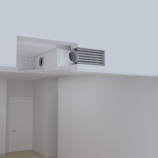Ephoca Ceiling Ducted can be discreetly installed above a ceiling and is ideal for single or multi-room applications. The return can be from the sides or the bottom for maximum flexibility. With up to 0.6″ external static pressure, this unit can be used where ducting is required. Use with any interior grille and louver to provide additional design flexibility. A bathroom exhaust can connect to the dedicated stale air exhaust. Ceiling Ducted units are available with or without the integrated ERV.