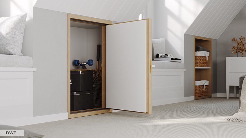 The DWT Knee Wall Access Doors are new and highly energy efficient design. The 2 5/8″ thick sash fully filled with thermo-insulating material, provides an excellent barrier reducing heat loss (R-value 10). The doors as standard are equipped with handle and finishing lining. The doors can be installed in two versions of opening (right or left).