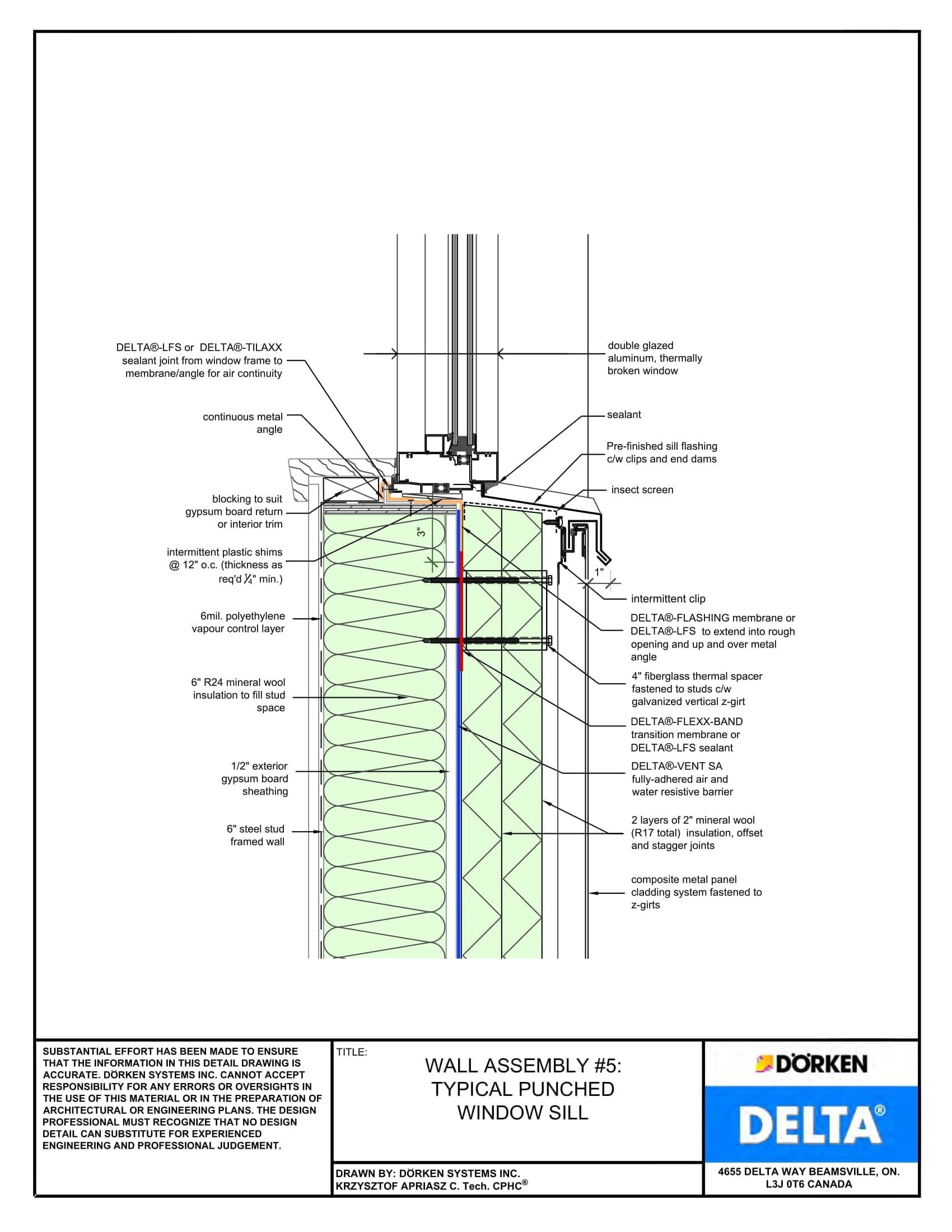 Delta® Vent SA Wall Assembly — Light Cladding, Concrete Frame, More Than 2″ Exterior Insulation – Punched Window Sill